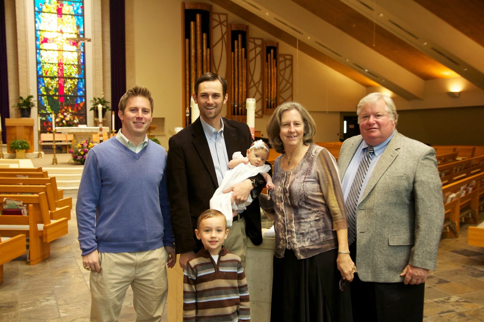 Kenzie Rose was baptized at St Theresa Catholic Church on Saturday, November 30. Grammy, Gramps, Uncle Dan, Gramma Dar, Emmy, Uncle Bob, Luke & Tate all joined us along with Kenzie's Godfather, Chad. Deacon Don performed a great service and Kenzie didn't utter a peep.