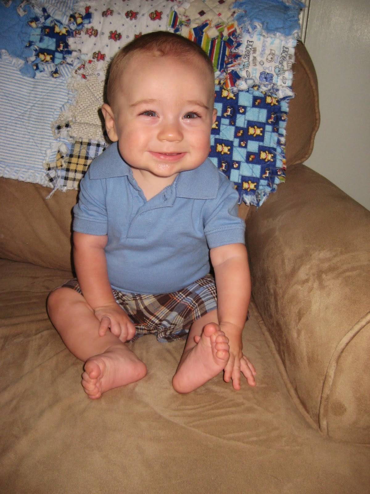 She "talks" a ton and started saying "Dadadadadadadadadada" over and over. She laughs often- usually at her crazy brother. Kenzie sleeps from 7 pm- 7 am and is still only awake for 2 hours at a time (unless we have to go to school or baseball, etc). She naps well, usually for 1.5-2.5 hours at a time.